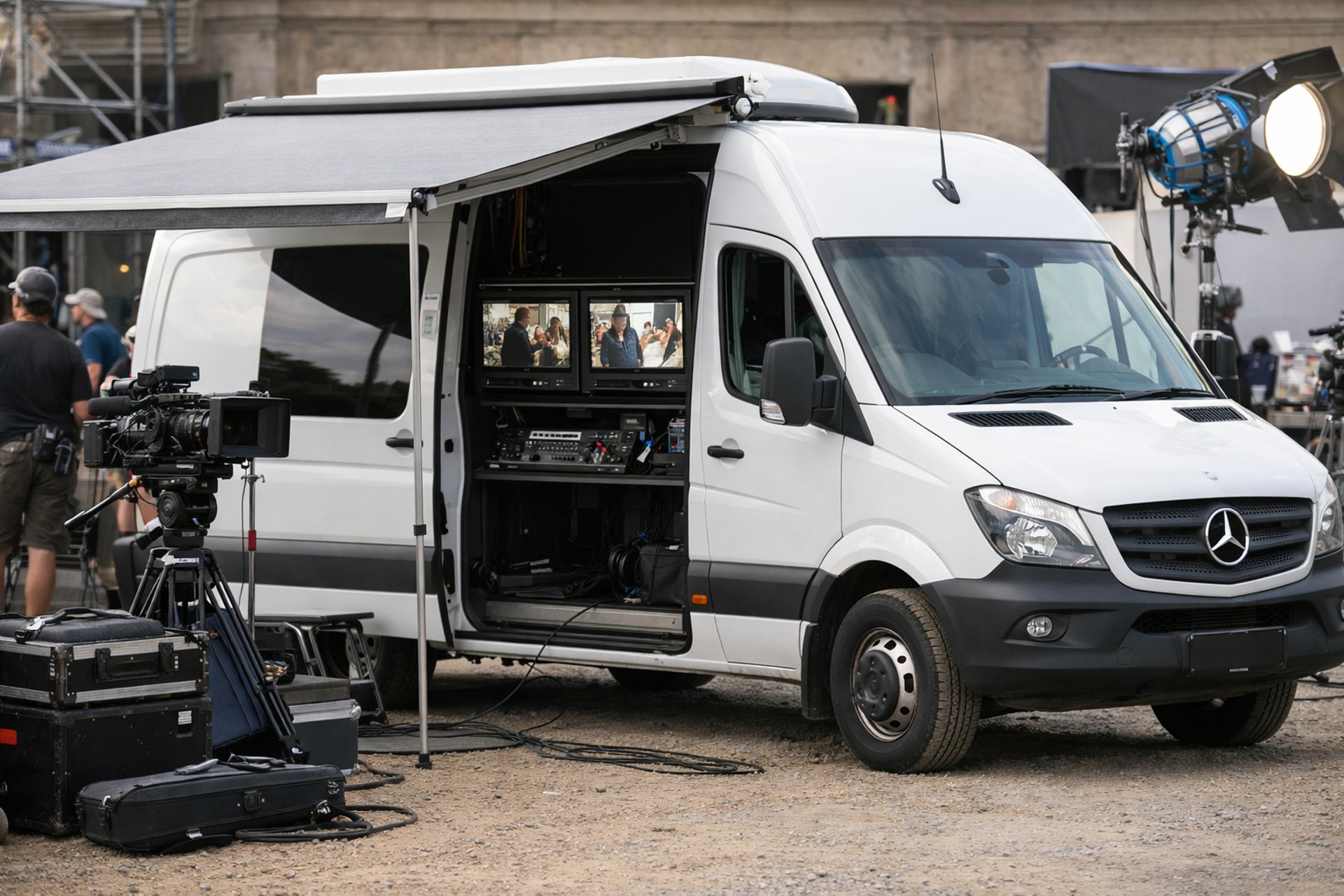 Mobile production command vehicle in action, fully equipped and ready.
